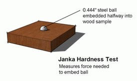 The Janka Scale rates the relative hardness of wood. The scale was developed in 1906 by Gabriel Janka, an Austrian wood researcher, and standardized in 1927 by the American Society for Testing and Materials (ASTM). The Janka Hardness Test measures the force required, in pounds per square inch (PSI), to embed a 11.2mm steel ball to half its diameter into the wood. This is one of the best measures of the ability of wood species to withstand denting and wear. It is also a good indicator of how hard a species is to work with, for example to saw or nail. This should only be used as a general guide when comparing various species of wood flooring. Depending on where and how the wood is harvested, processed, treated, dried and stored, the results may vary. Plank construction and finish are also important factors when determining the durability and ease of maintenance of any wood floor. This rating is very important when it comes to matching timber to its intended usage. For example, if you are building a floor where high levels of foot traffic are expected, a more durable timber would be best, and therefore one with a higher Janka rating. If you are a handyman, another point you need to keep in mind about the hardness of wood is that the harder the wood, the more difficult it will be to work with. Unless you have top-of-the-line equipment and a lot of wood flooring experience, you may not want to select the species with the highest Janka rating. Balsa Wood is softest at 22 psi, with the hardest timber measured Australian Buloke at 5060 psi. Many species of Gum measure between 1500 and 2000 psi, whereas Pine radiata measure 710 psi.
